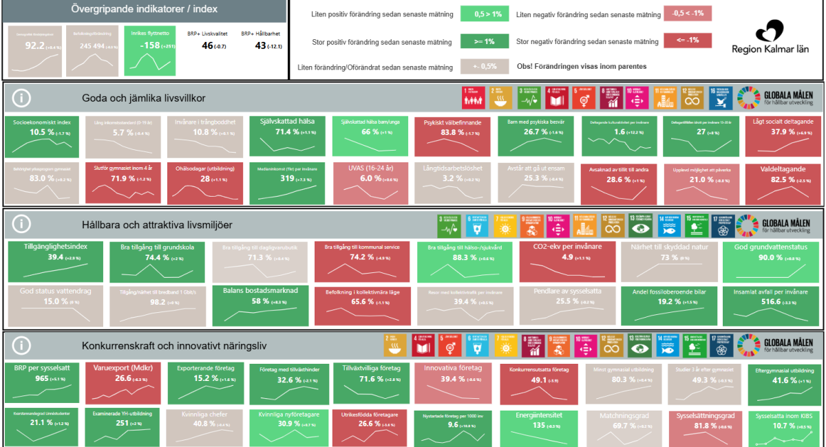 För att se om vi är på rätt väg följs den regionala utvecklingsstrategins mål och indikatorer upp regelbundet. Här hittar du mer information om hur vi ligger till just nu.